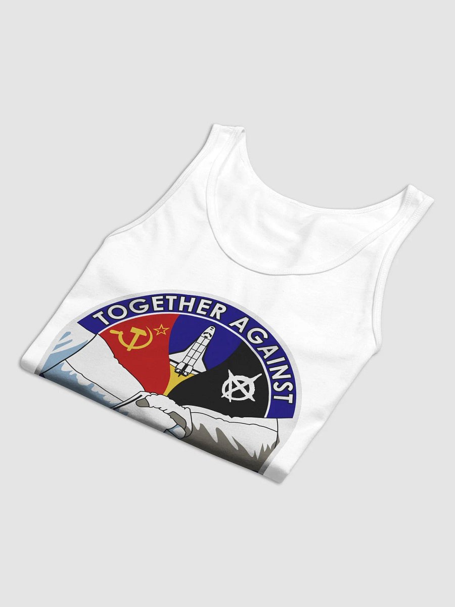 A tank top with the Together Against Fascism design on it! Show off your guns, comrades! Based off the STS-79 mission patch.